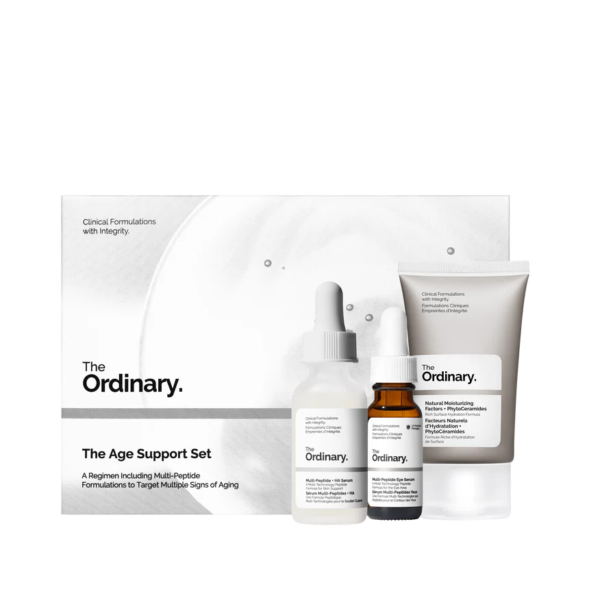 Un kit anti-edad diseñado con un suero facial, suero para ojos e hidratante enriquecidos con complejos multi-péptidos y ácido hialurónico. Este régimen mejora visiblemente la firmeza, hidratación y suavidad de la piel, reduciendo las líneas finas y mejorando la elasticidad.