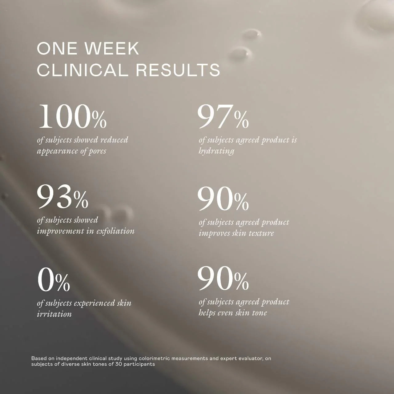 Qué es: Un exfoliante lechoso suavizante que elimina las células muertas y oscurecidas, refina visiblemente la textura y desobstruye los poros gracias a una mezcla del 9 % de ácidos láctico, azelaico y tranexámico. Su fórmula única potencia al instante la luminosidad natural de la piel y mejora la eficacia de los ingredientes activos.