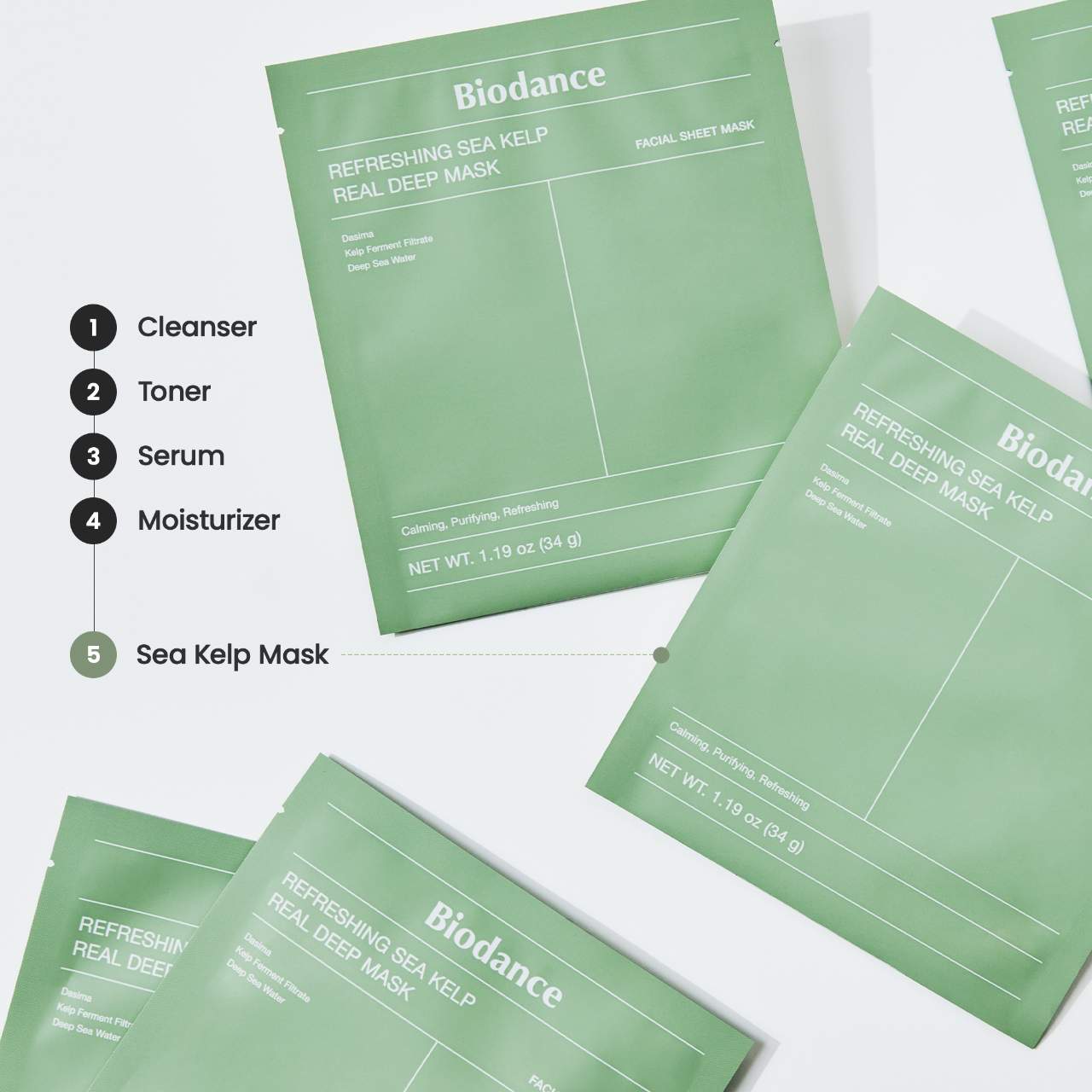 Mascarilla Refrescante de Alga Marina – Pack de 4 para Calmar y Controlar el Sebo