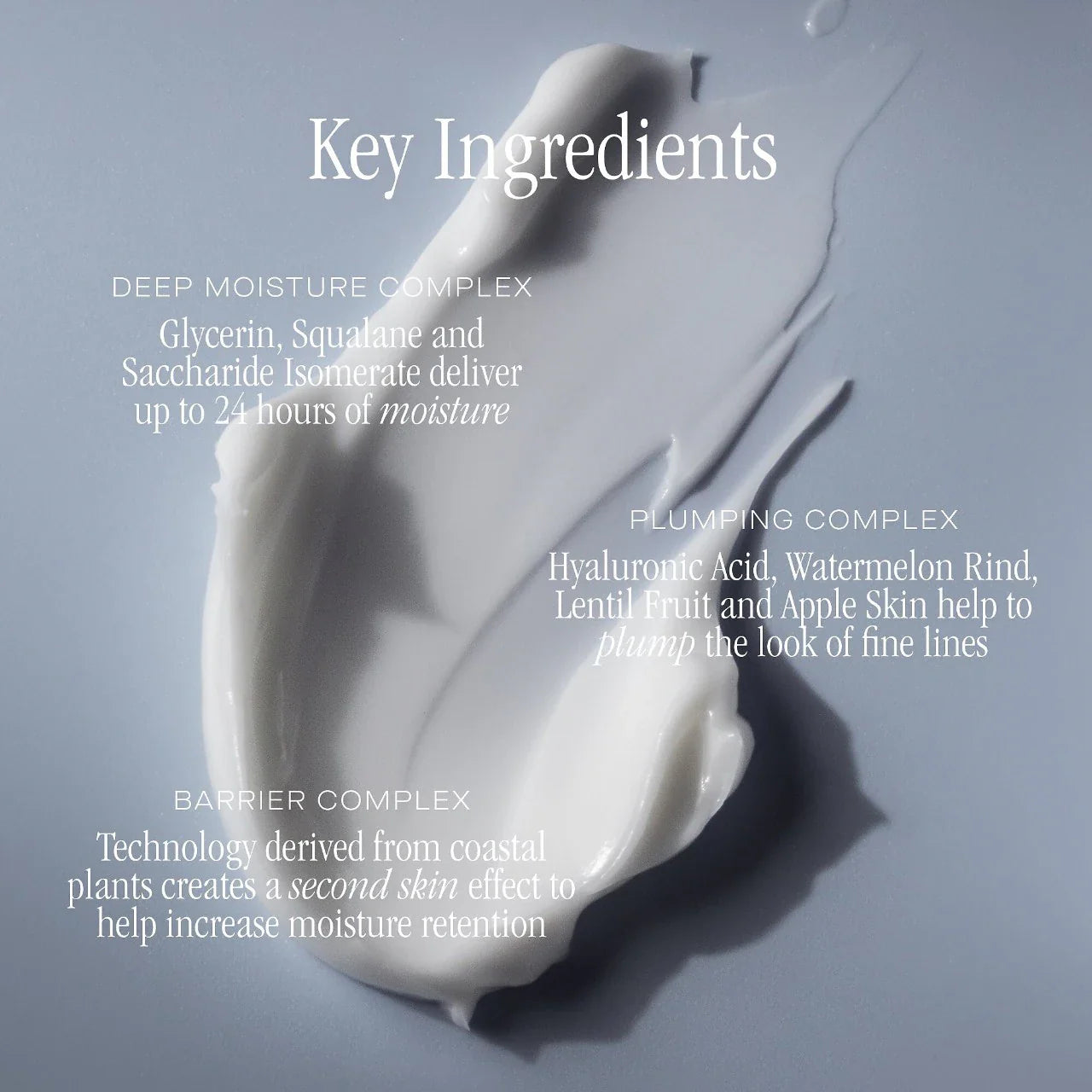 Qué es: Una crema facial rica y esponjosa que proporciona hidratación intensa, volumen y firmeza, dejando la piel visiblemente más suave, elástica y luminosa.